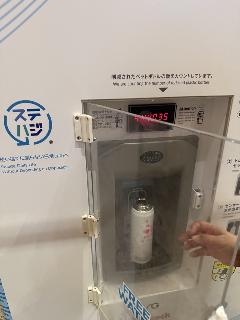 4つ目は会場内にある無料の給水器で給水すること(ついでにボトルの自動洗浄も)