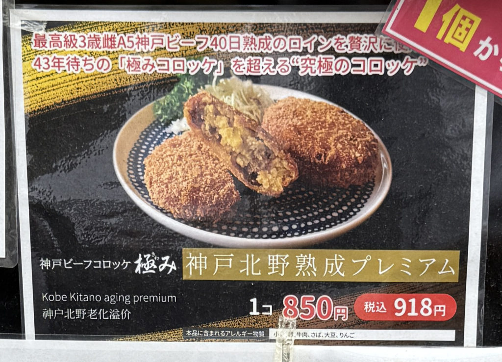 お店の看板の1番上に「神戸北野熟成プレミアム918円」とあります