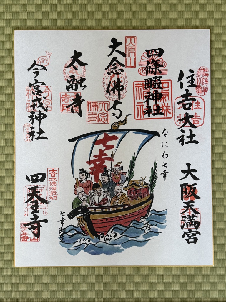無事に「七幸めぐり」を完遂した私の手元には7つの寺社で御朱印をいただいた「色紙」があります。「七幸めぐり」では、私の様に「専用色紙」に御朱印をいただく他にも「集印帖」「絵馬掛け」をいただく方法もあります。「色紙」に御朱印をいただくとなるとそこそこ大きな「色紙」を毎回持ち歩かないといけませんのでそれなりに邪魔(満員電車には乗れません)なので場合によってはその他の方法も選択肢に入るかも知れませんね。まぁ私は「色紙」一択ですが(笑)