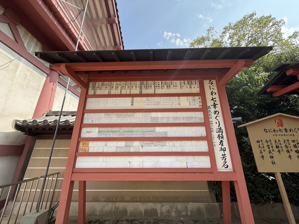 そして「七幸めぐり」のもうひとつのご褒美として「四天王寺」さんの「満願者御芳名掲示板」に2年間名前が掲載されます。(2年の間に再度「七幸めぐり」を行うとそこからさらに2年間掲示されます。)