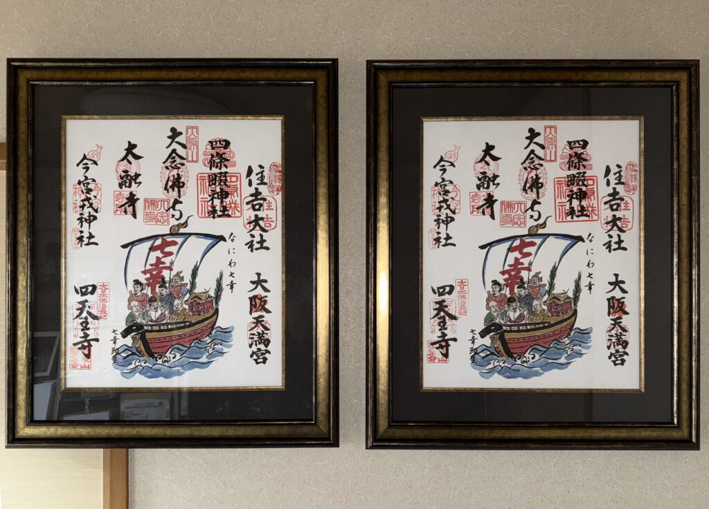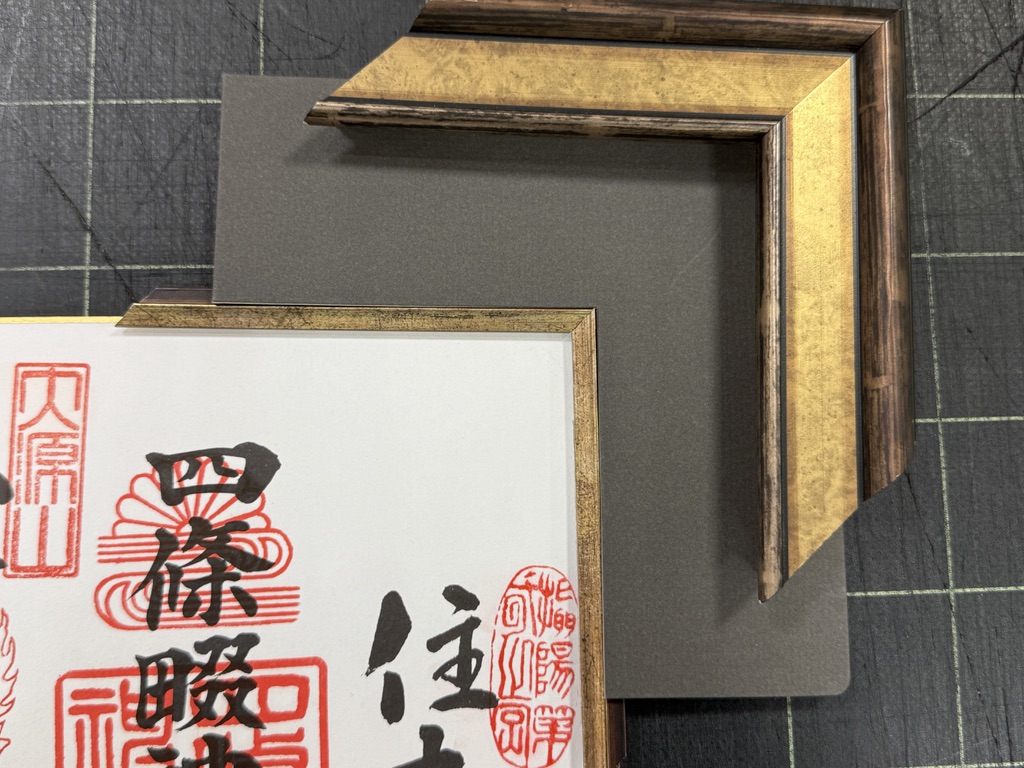 あんなに苦労していただいた「七幸めぐり」の「御朱印色紙」ですからぞんざいに扱うわけにはいきません。ということで立派な額縁に入れようと決めました。