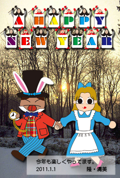 ウサギと言えば、不思議の国のアリスということで、ウサギとアリスに扮してみました。ウサギの耳とアリスの青いワンピースはちょっと(かなり?)無理がある夫婦ですけどね。(笑)